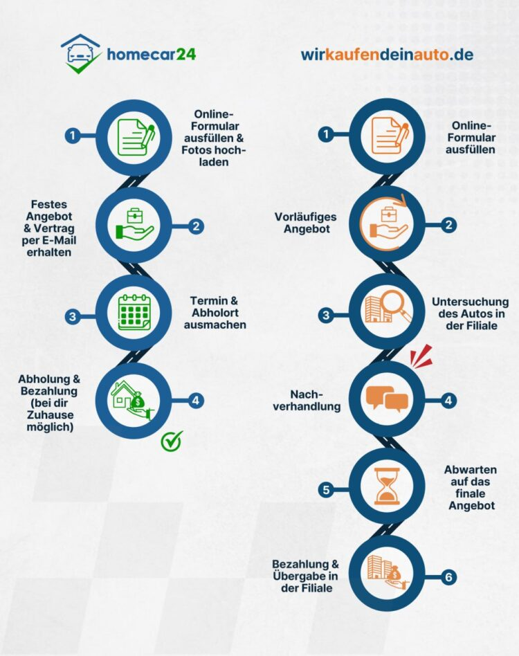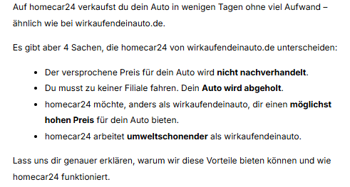 Danach listete ich auf, was homecar24 von wirkaufendeinauto unterscheidet: